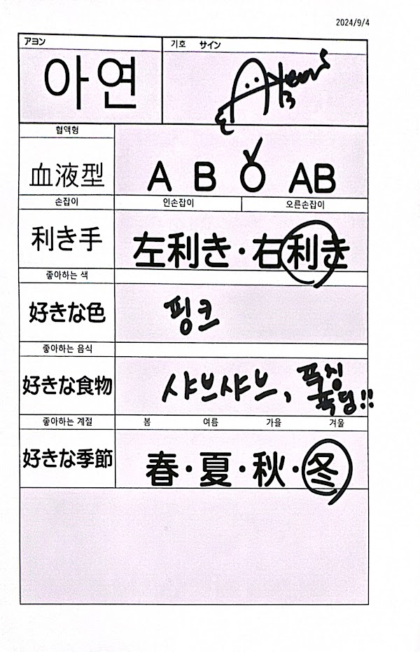 | あいさつ | マンネ、ミンソで~す。 |